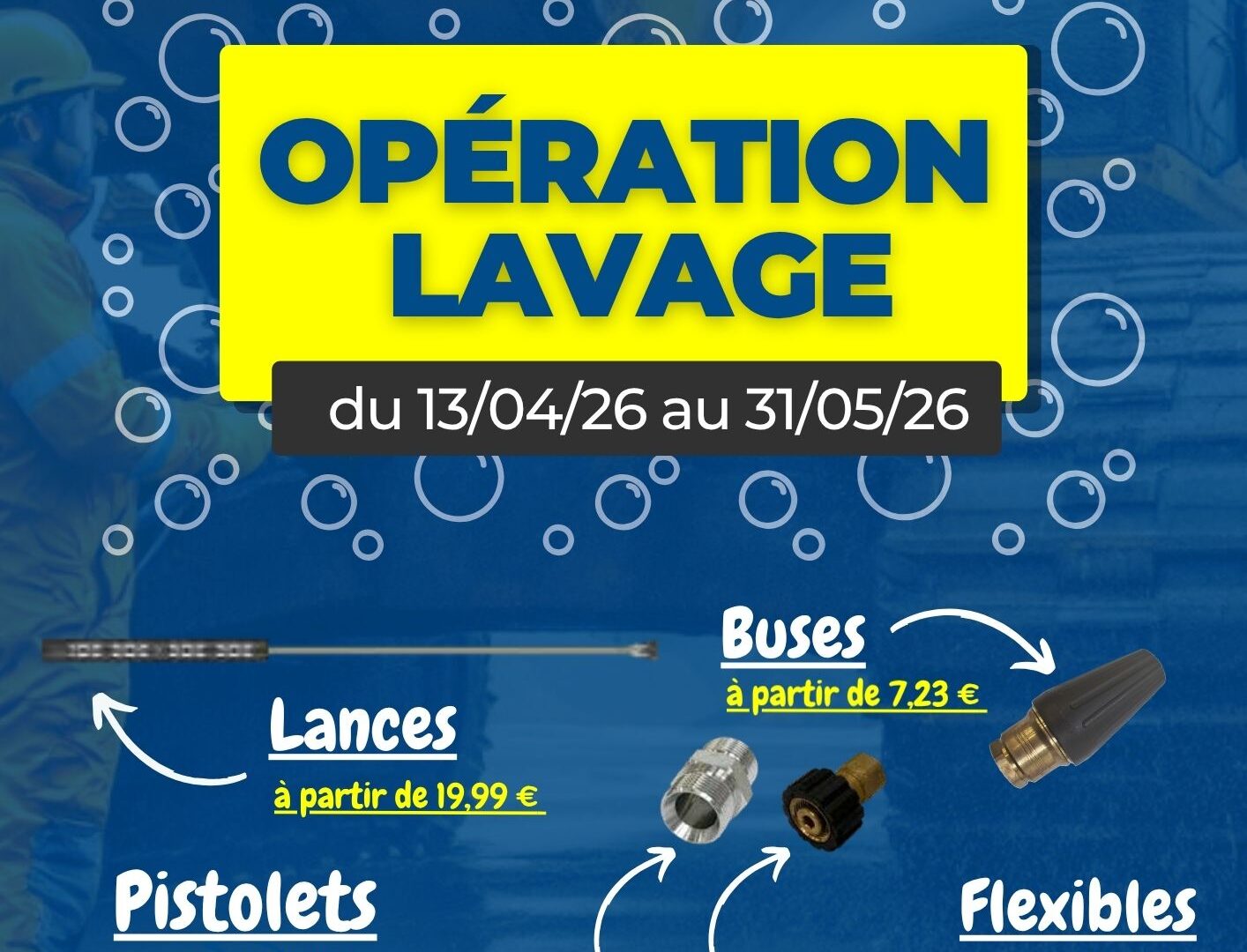 Il existe une multitude de types de produits pour le lavage haute pression. Ainsi, retrouvez chez Soc Hydro une gamme complète pour l’eau HP comme des lances, des pistolets, des tuyaux, des adaptateurs, buses et protections.